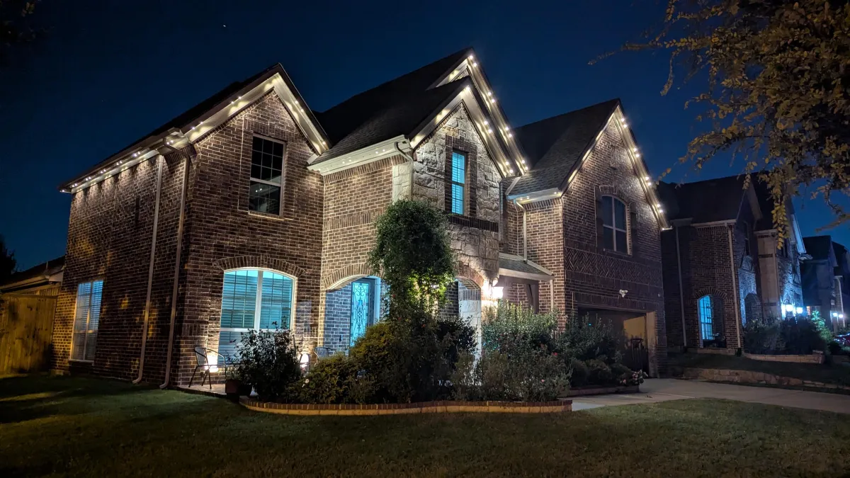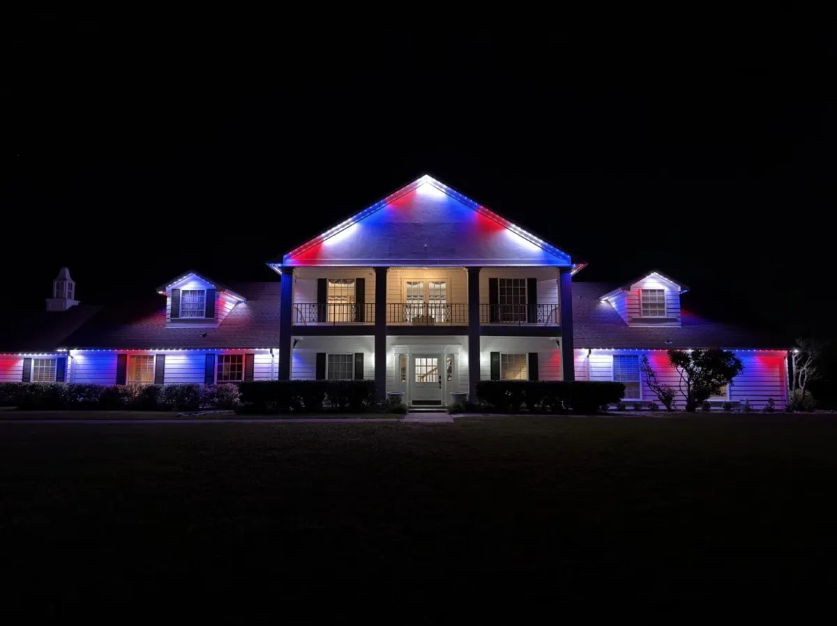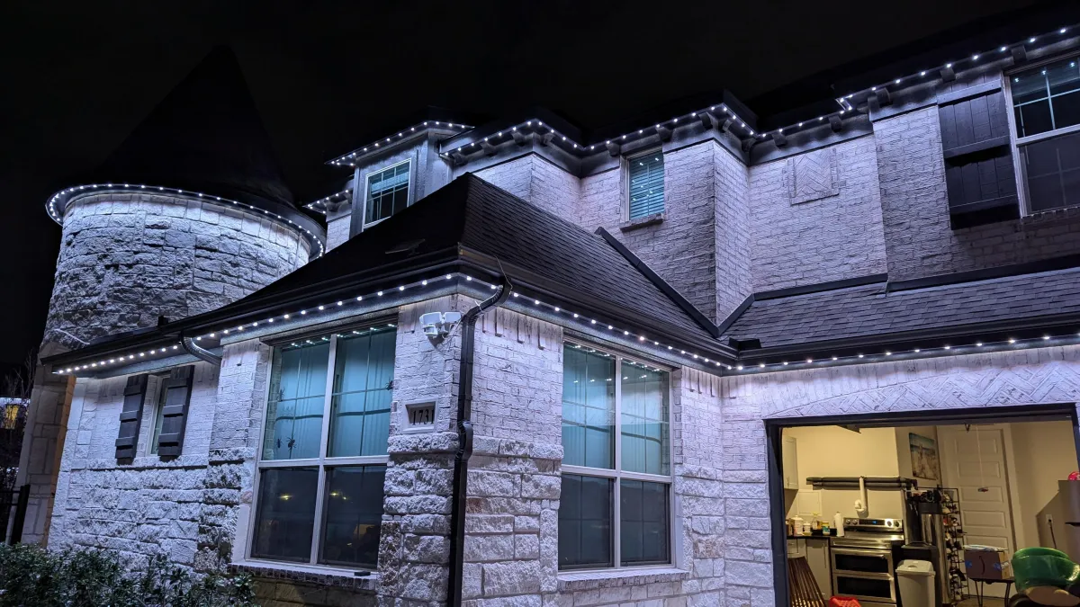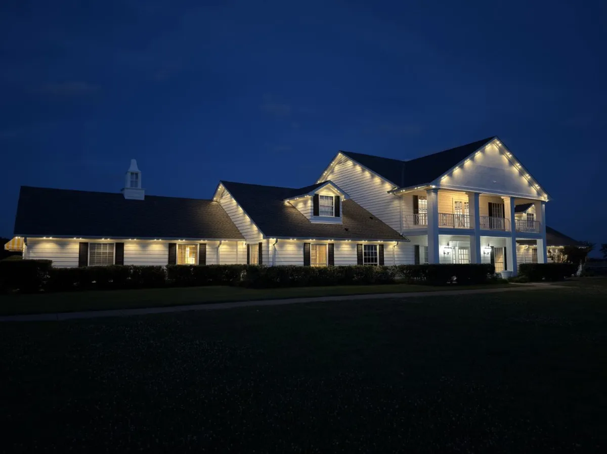 Our lights mount under the soffit, so they’re naturally shielded from heat, rain, and hail. The system uses high-quality, waterproof, UV-resistant components with clean, protected wiring. And if a bulb ever goes out, it’s easy to service. You’re also covered by strong manufacturer warranties plus our local support, so you’re never left hanging after install.